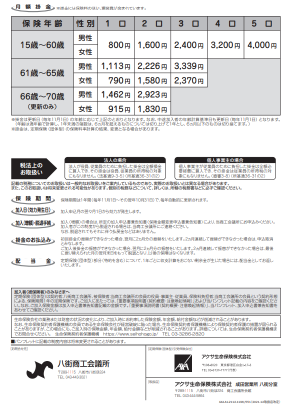 - 八街商工会議所 ふれあい共済担当 TEL 043-443-3021